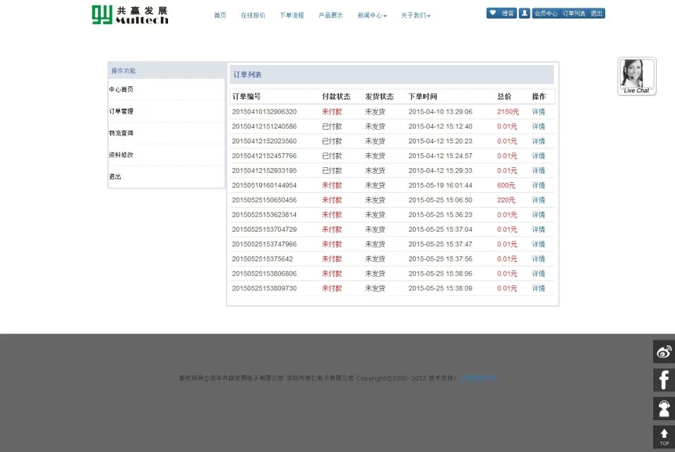 ①:在線自助報價下單,根據(jù)不同國家,不同城市區(qū)分不同報價 ②:網(wǎng)站系統(tǒng)設(shè)置 ③:中英文雙語切換 ④:權(quán)限管理 ⑤:COOKIE防注 ⑥:SQL防注,MD5加密 ⑦:文章模塊,會員模塊 ⑧:產(chǎn)品模塊,廣告模塊 ⑨:訂單模塊,物流模塊,支付寶,PAYPAL支付接口 此系統(tǒng)可以運用于任何需要在線報價的行業(yè),有需要定制的,請聯(lián)系我們