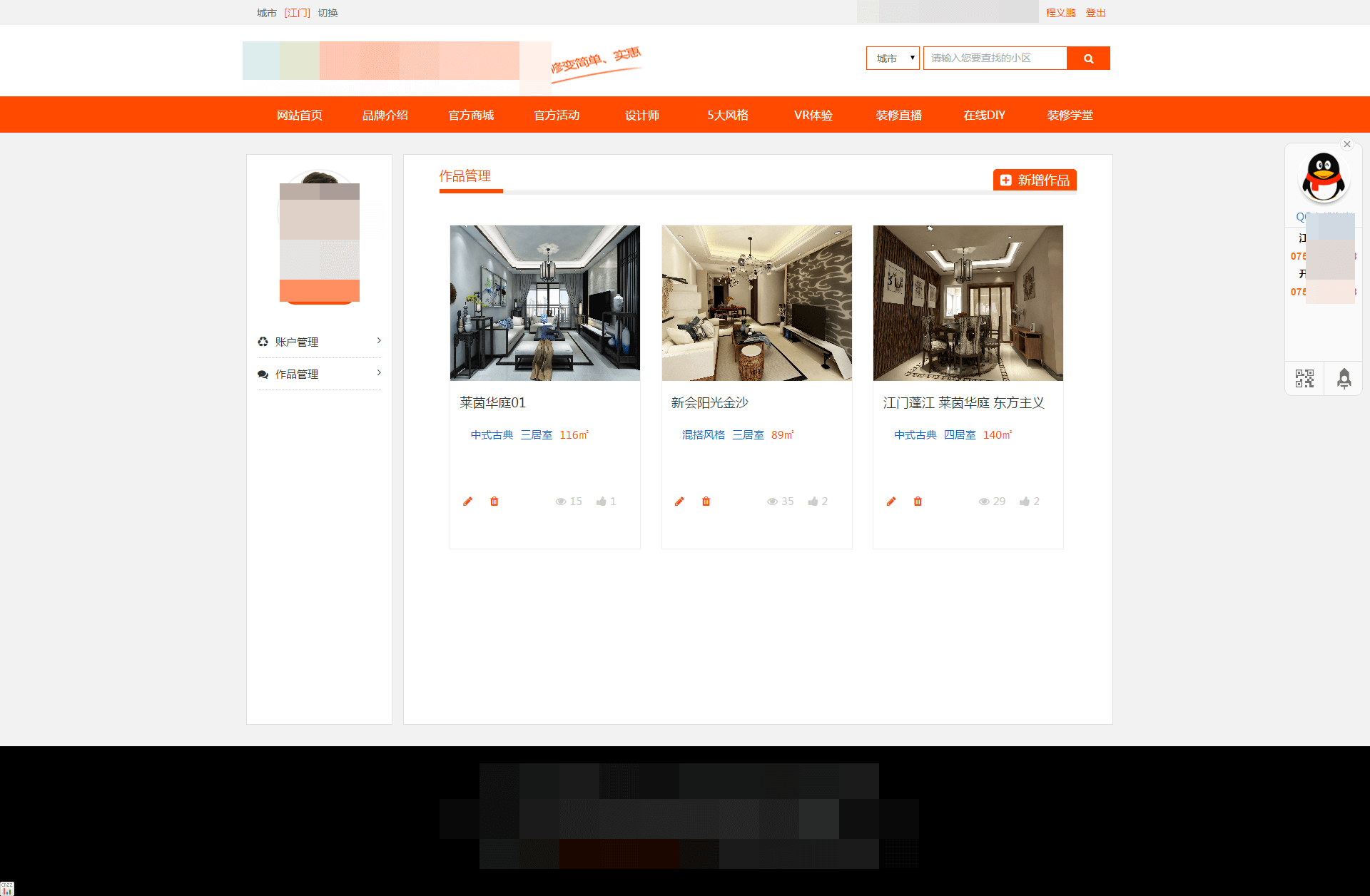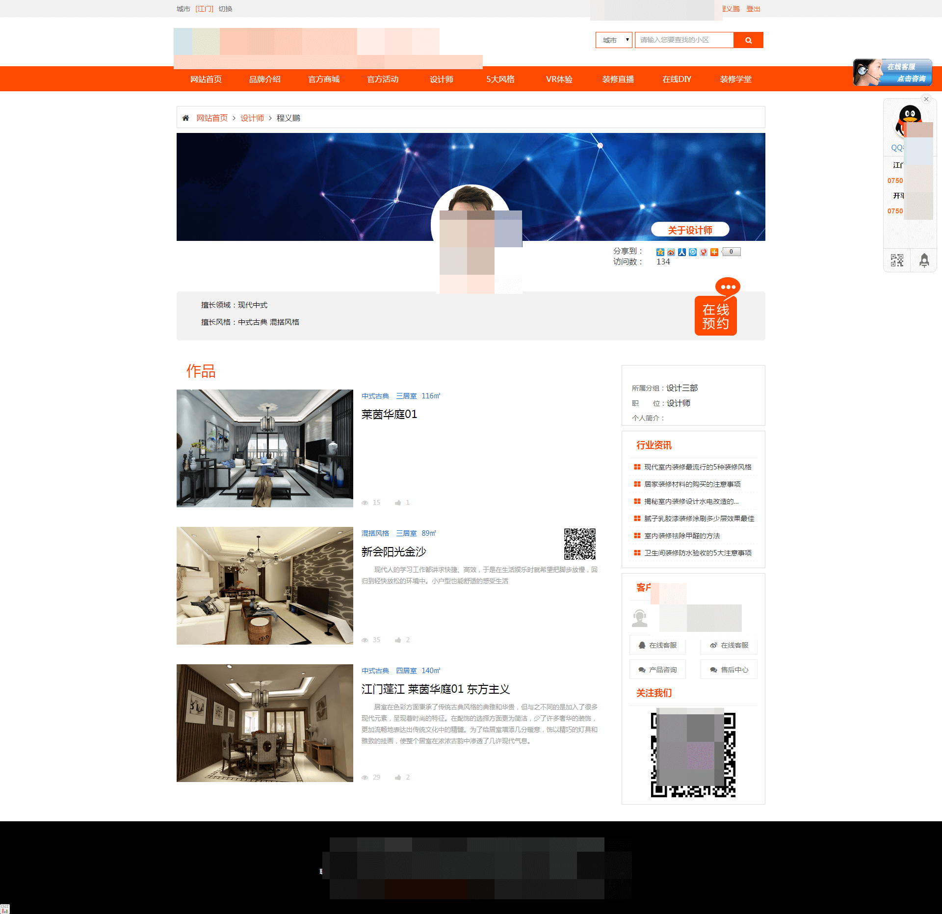 ①設(shè)計師可以生成自己的個人主頁 ②裝修直播,可對接ERP系統(tǒng)實時更新