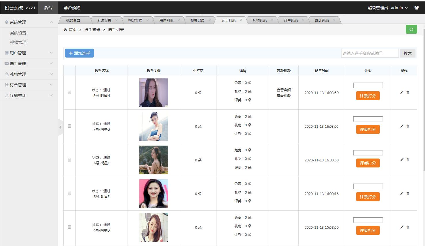 - 3.新增前后臺可控制選手分頁數(shù)量,人性化設置