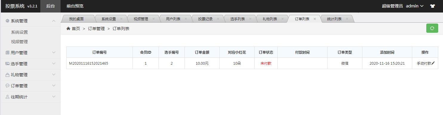- 1.修改投票為免費和付費兩種,免費票數(shù)用完后,可以選擇禮物為選手投票,后臺可配置每天免費投票數(shù)和選手每天獲得總免費票數(shù)