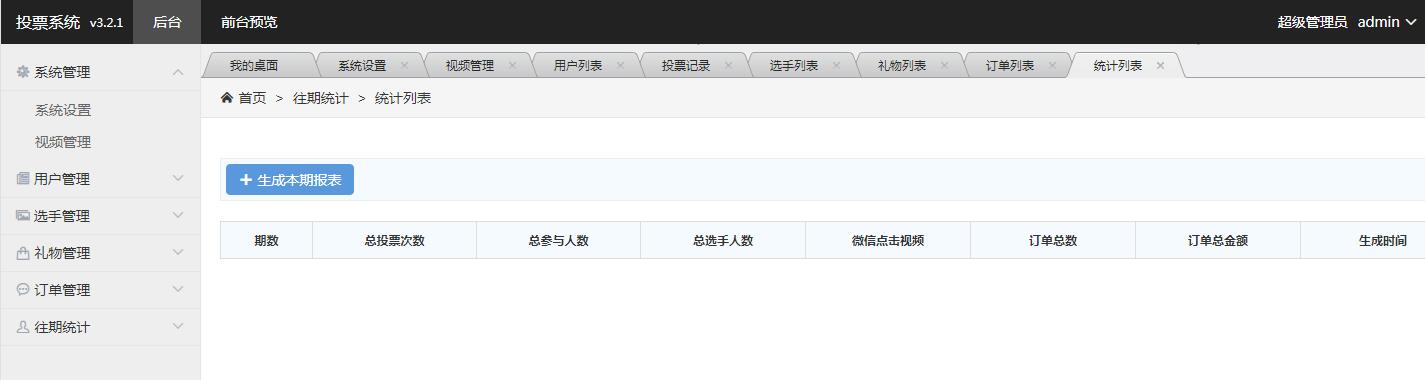 - 5.新增統(tǒng)計功能-自動化刪除所有數(shù)據(jù),重置系統(tǒng),并添加對應的數(shù)據(jù)統(tǒng)計表,可以靈活的無限開展多期活動。